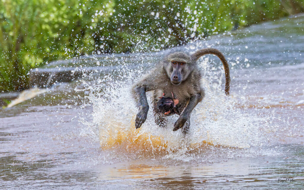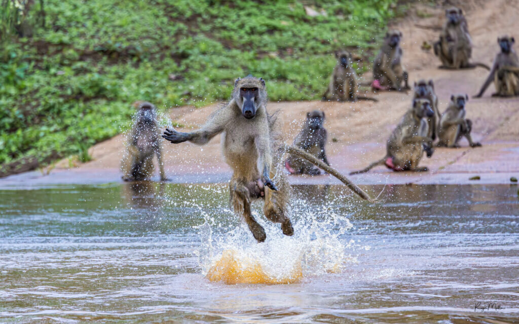 در تصاویری بامزهای که از عبور بابونها از رودخانه در آفریقای جنوبی ثبت شده است خانواده بابونها به شیوهای جالب از رودخانه عبور میکنند که باعث ثبت عکسهایی بینظیر شده است.